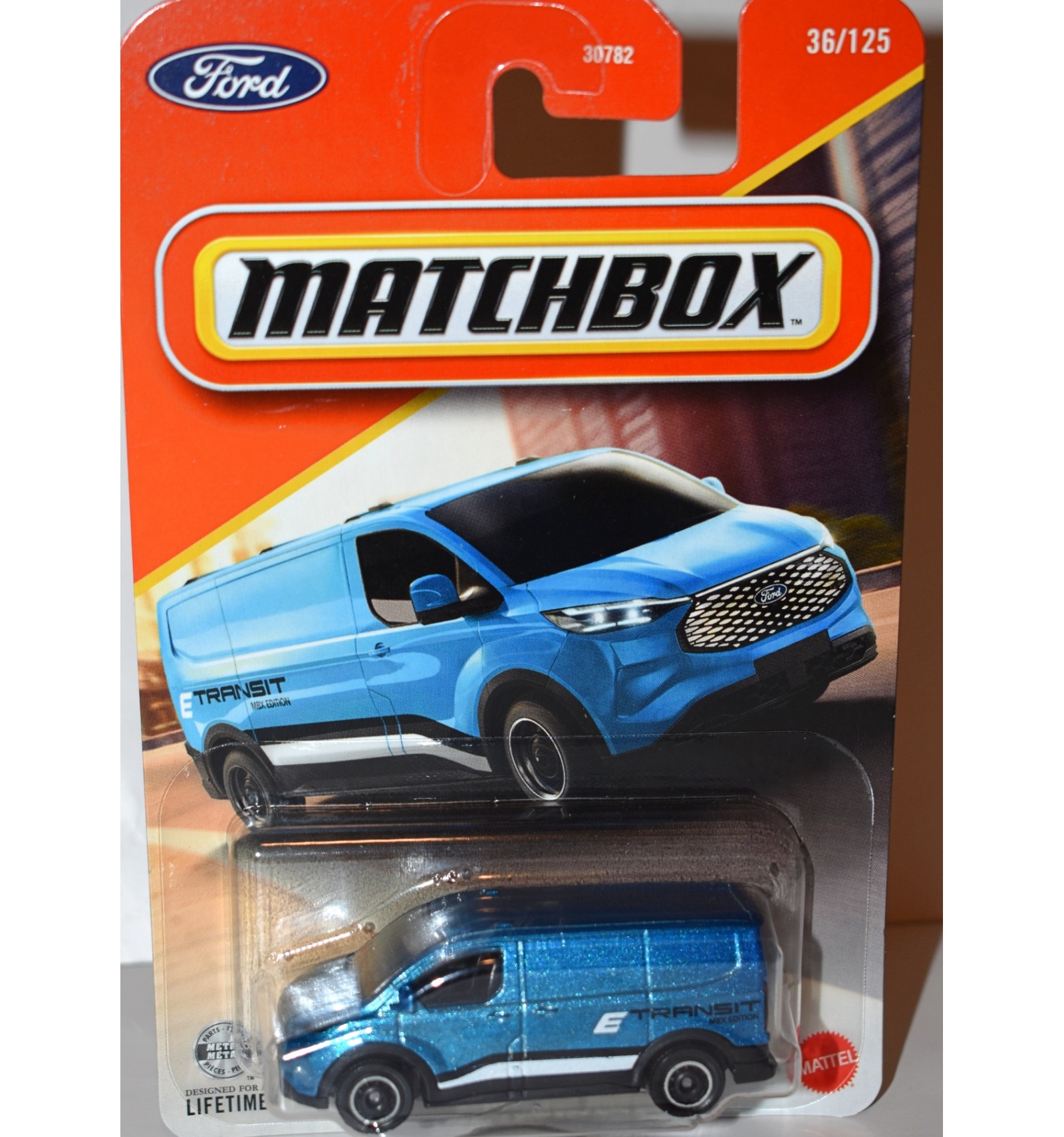 This is a great piece. It is the 2023 Ford E-Transit Custom Van If you collect Matchbox, Ford Trucks or EV's this is a very colorful addition for your collection! (1:64 Scale)