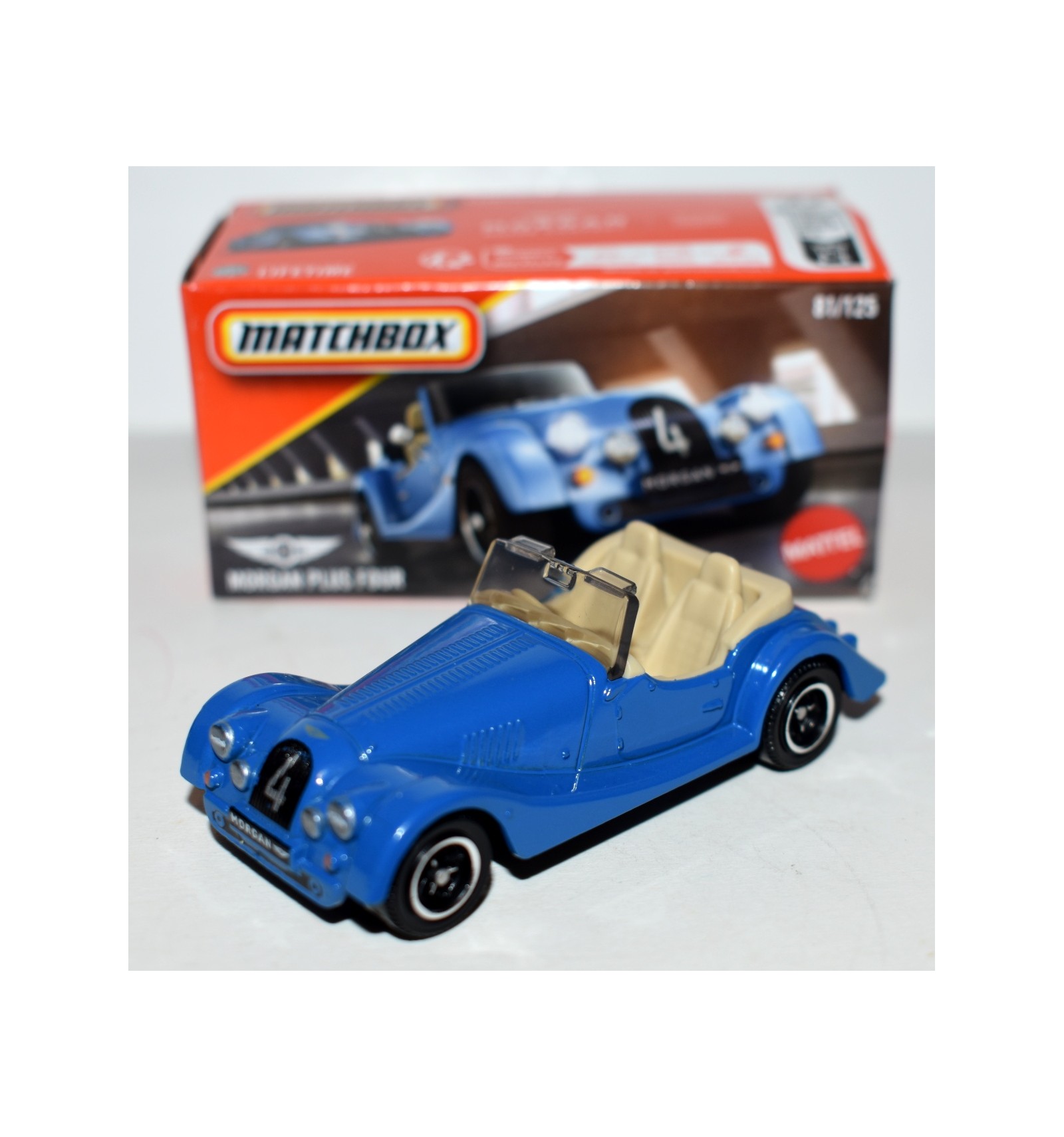 This is the beautiful Morgan Plus Four Sports Car in a great new color with a matching box . This is a great cross-collectible so if you collect Matchbox, Morgan or Sports Cars this is a great find for your collection. (1:64 Scale)