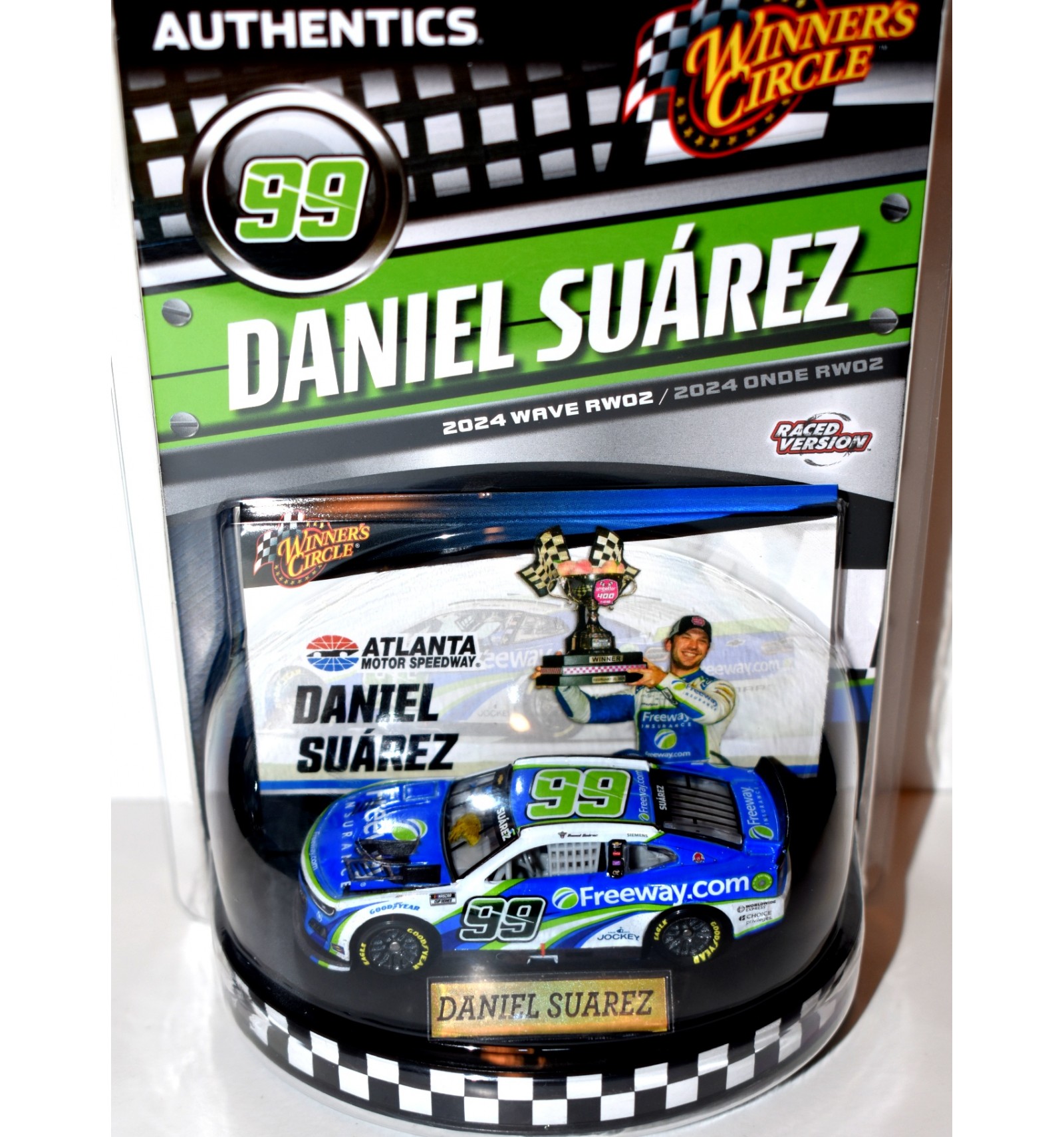 NASCAR Authentics has released a beautiful, highly detailed line of NASCAR Stock Cars under the Winners Circle brand name. This is the Daniel Suarez Freeway Atlanta winning Camaro Stock Car.