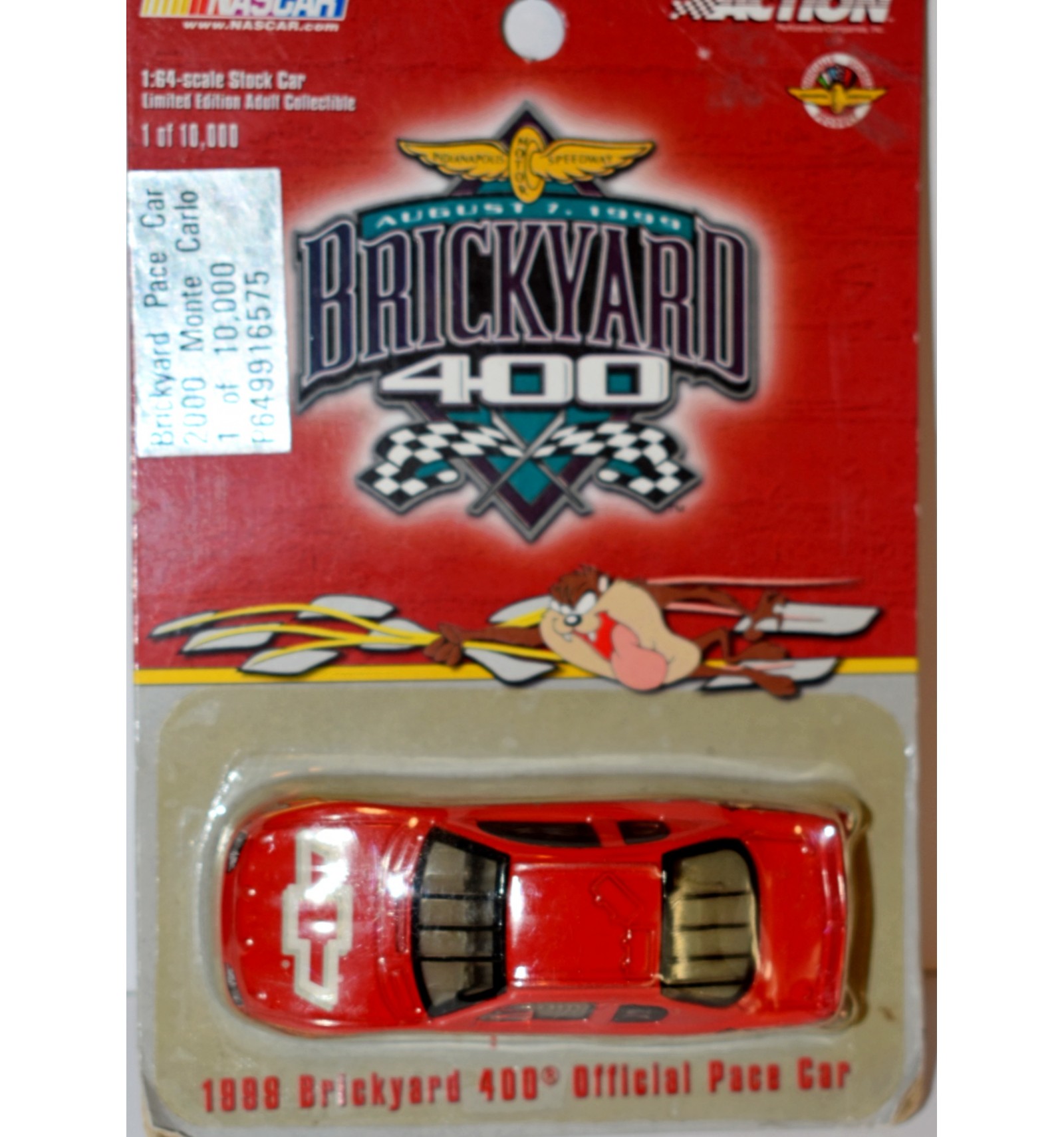 This is a beautiful 1988 Brickyard 400 Official NASCAR Chevrolet Monte Carlo Pace Car from Action Racing Collectibles. Released 35+ years ago, this is a great find for Action, NASCAR, Chevrolet or Brickyard collectors. It's a chance to add this very colorful addition to your collection. (1:64 Scale)