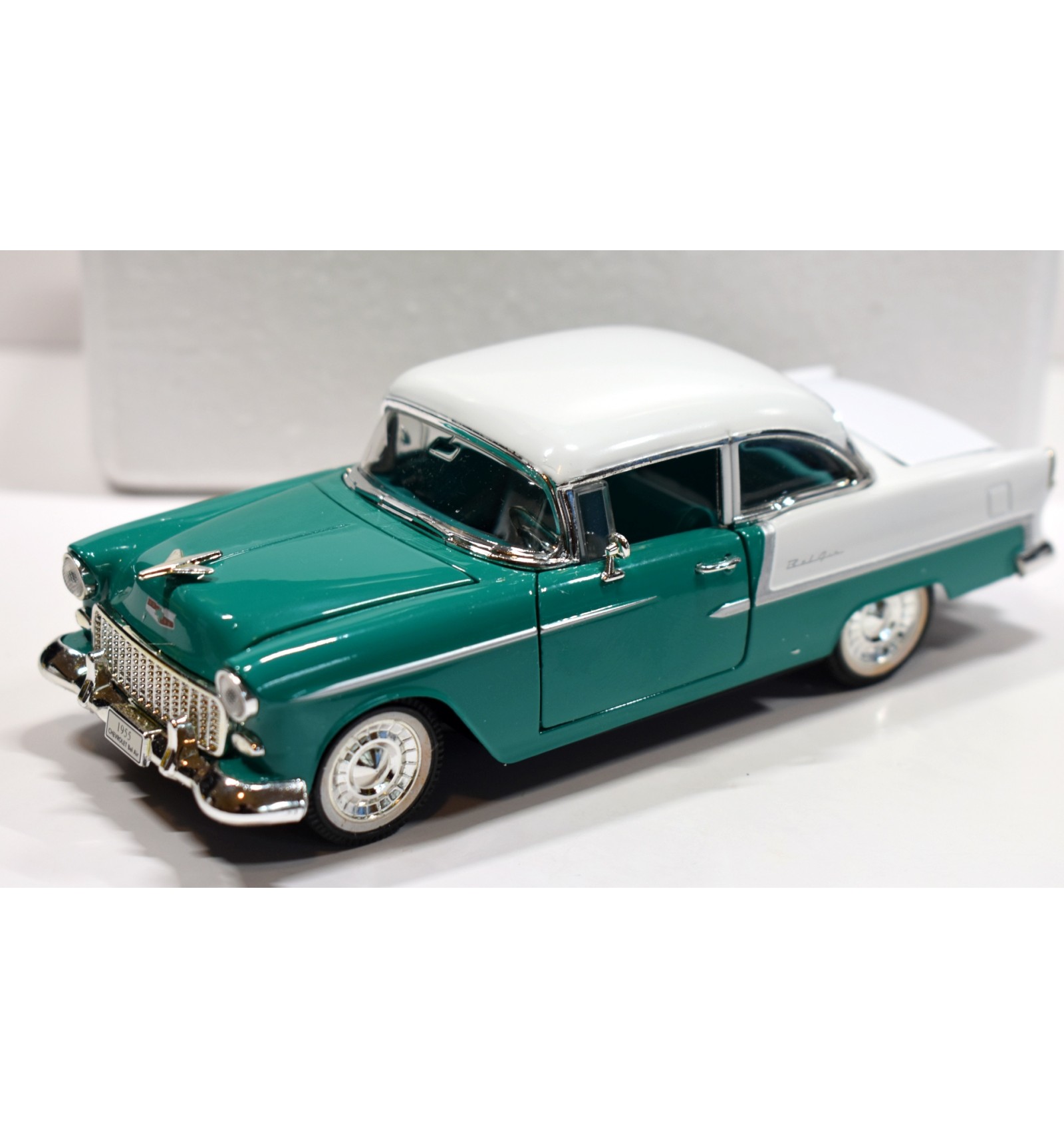 This is a very highly detailed 1955 Chevrolet Bel Air from Arko Products. It has functioning doors, hood Trunk and has a beautiful color combination. If you collect Chevy, Tri-Chevy's or Arko this is a wonderful addition for your collection (1:32 Scale)
