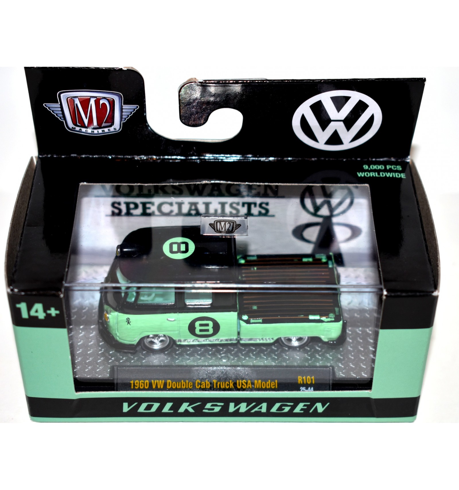 This is the beautiful VW Specialists 1960 Volkswagen Double Cab Truck USA Model Pickup. It is from Auto-Thentics R-101. If you collect Volkswagen, Vans or M2 Machines this is a great addition for your collection. (1:64 Scale)
