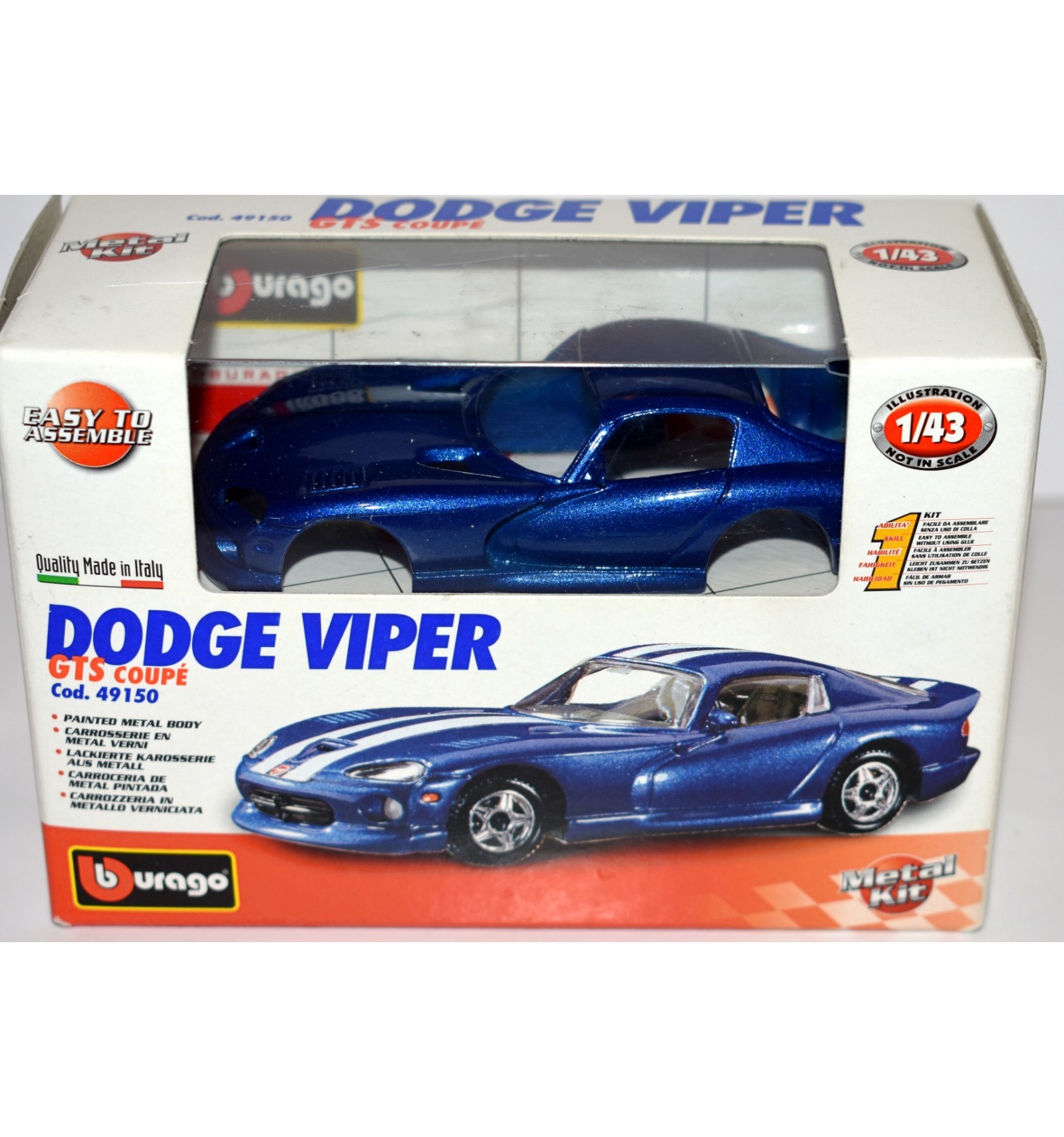 This is the beautiful Dodge Viper GTS 1:43 Diecast Scale Model Kit. It is a nicely detailed 1:43 Scale Diecast Kit from Bburago. It features easy to assemble parts/instructions. It is Mint/unopened. It was released by Bburago 10 years ago. If you collect MOPAR, Vipers or Bburago this a great, very hard to find Defender for your collection.