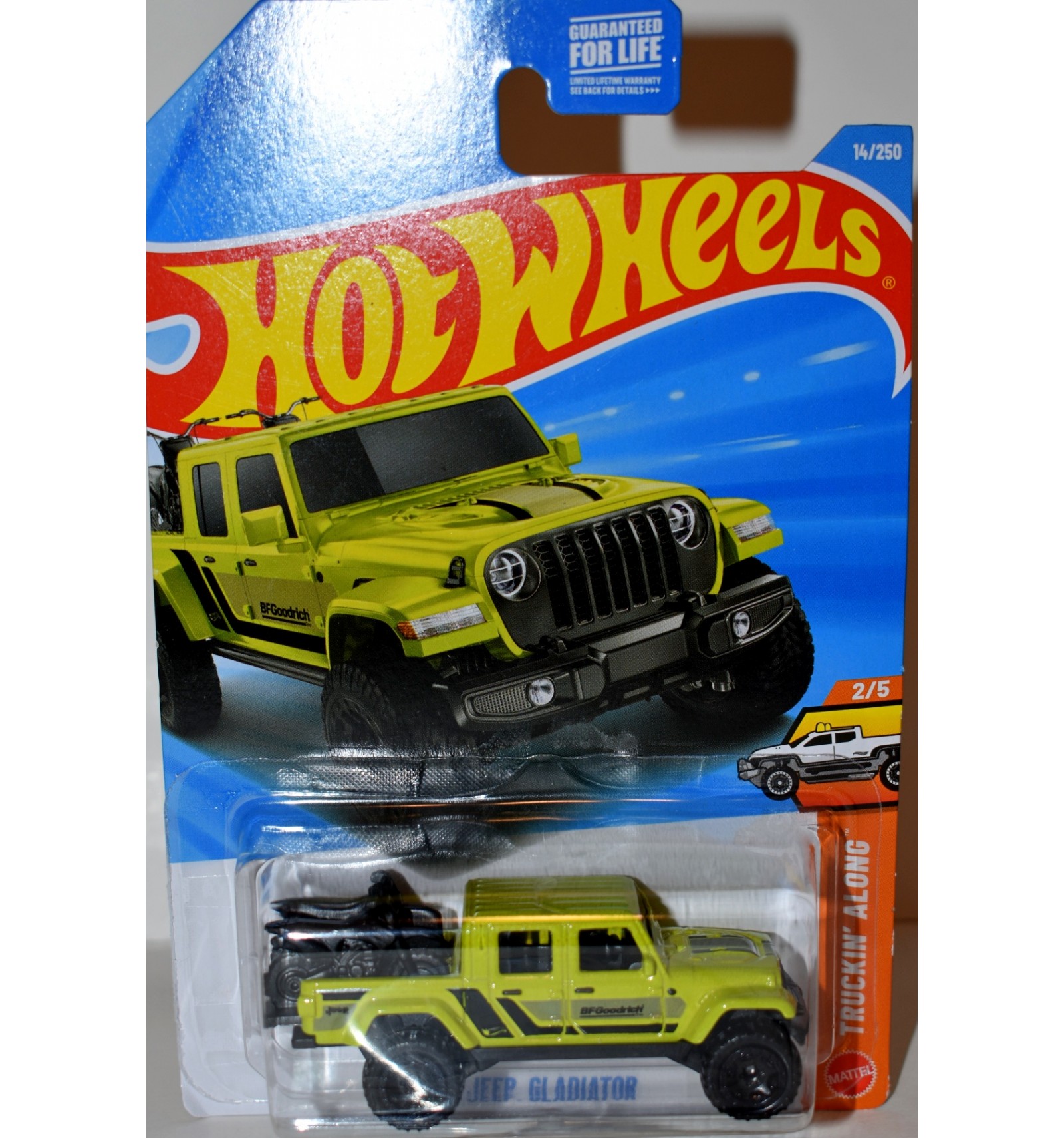 This is the beautiful Jeep Gladiator with Motorcycles in the bed from Hot Wheels. This is one of our FAVORITE colors of this truck! If you collect Willys/Jeeps, 4x4's or Hot Wheels this is a wonderful find for your collection. (1:64 Scale)