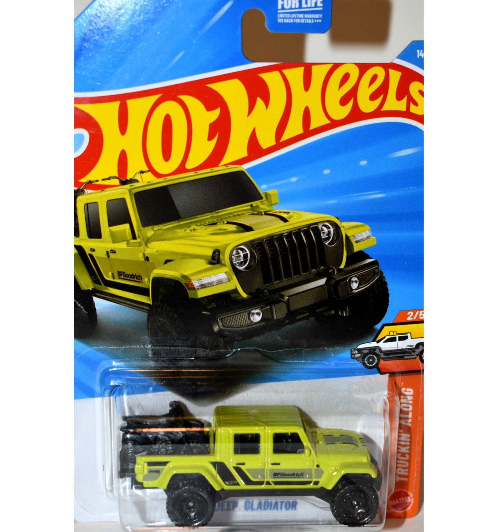 This is the beautiful Jeep Gladiator with Motorcycles in the bed from Hot Wheels. This is one of our FAVORITE colors of this truck! If you collect Willys/Jeeps, 4x4's or Hot Wheels this is a wonderful find for your collection. (1:64 Scale)