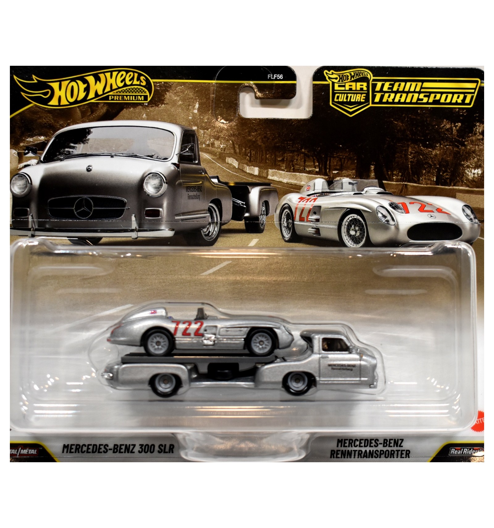 Hot Wheels Car Culture - Team Transport - Mercedes 300 SLR Race Car & Mercedes Renntransporter