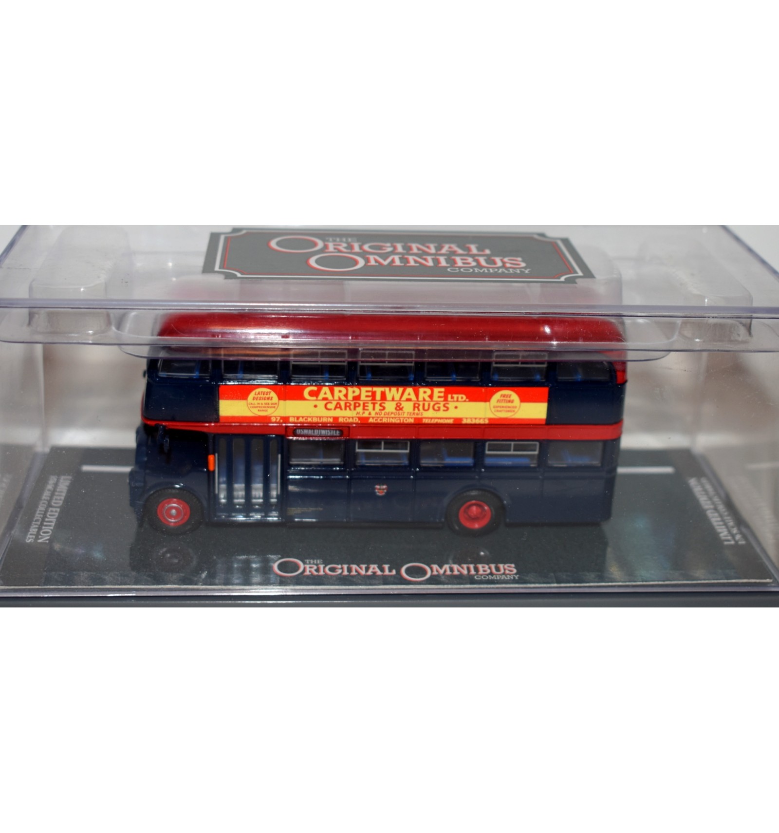 This is the Limited Edition (41103) Leyland Titan Carpetware Double-Decker Bus. It is a great looking bus with outstanding graphics and it was released 20+ years ago in 2003! This is #238 of the limited edition.