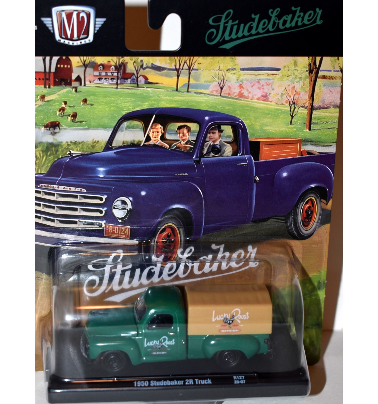This is the beautiful Lucky Roost 1950 Studebaker 2R Pickup Truck from the M2 Machines Drivers Series, R-127. This is a series that has all the models dome in performance parts sponsorship on the cars/trucks. If you collect Studebaker, or M2 Machines this is a great addition for your collection. (1:64 Scale)