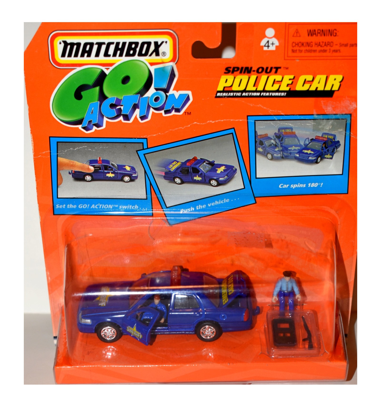 This is a great find of a short lived series from Matchbox, the Go Actions sets. It's a beautiful Ford Crown Victoria Sheriff Police Patrol Car. It's still in it's 30+ year old packaging. If you collect Ford, Police Vehicles or Matchbox this is a wonderful piece for your collection (1:43 Scale)