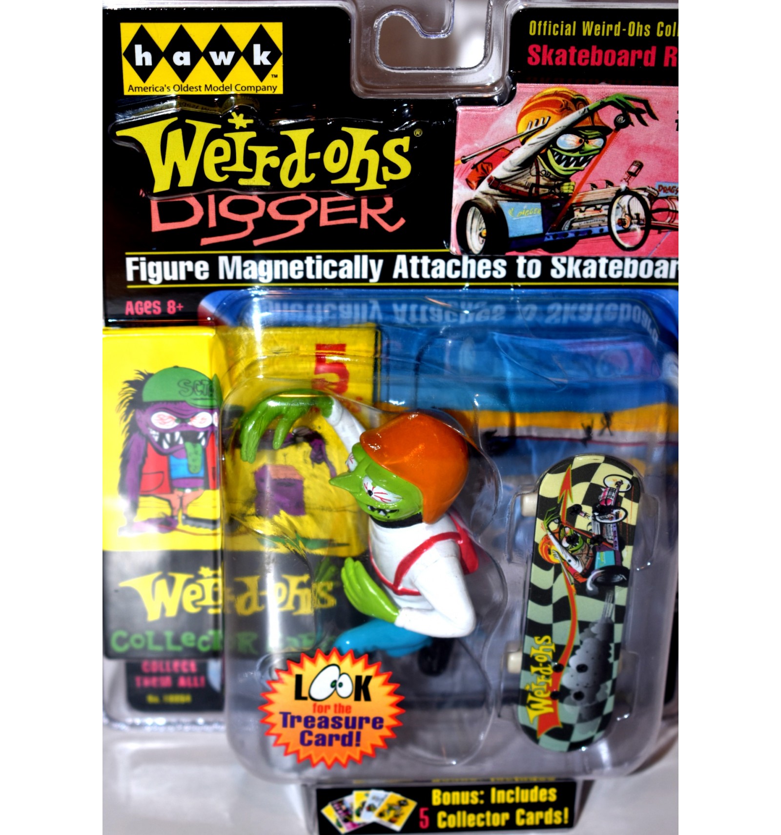 Hawk was a US based toy maker that became famous for their Weird Oh model kits in the early 1960's Designed by artist Bill Campbell, they were built to compete with Aurora's Monsters and Ed Roth's Roth Finks among others. They were later turned into an animated TV cartoon that aired in the US & Canada in 1999, 2000. They are beloved drag racing related characters and a part of multiple generations childhoods.