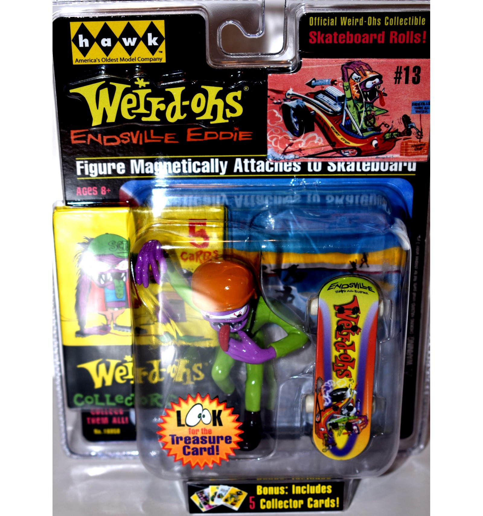 Hawk was a US based toy maker that became famous for their Weird Oh model kits in the early 1960's Designed by artist Bill Campbell, they were built to compete with Aurora's Monsters and Ed Roth's Roth Finks among others. They were later turned into an animated TV cartoon that aired in the US & Canada in 1999, 2000. They are beloved drag racing related characters and a part of multiple generations childhoods.