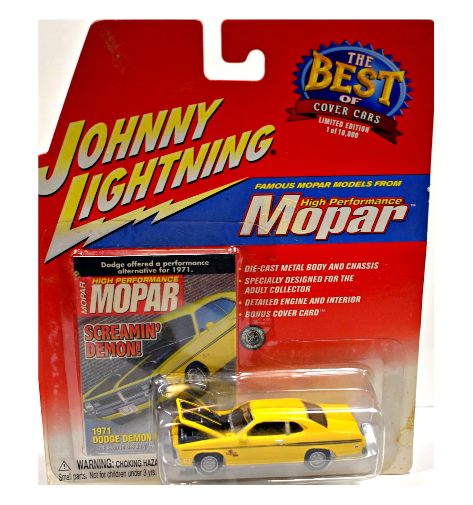 Released 25+ years ago This is the beautiful 1971 Dodge Demon from the Johnny Lightning High Performance MOPAR Magazine Series, R-7. We have not had these is stock for over 20 years, and are very pleased to be able to one again while it lasts