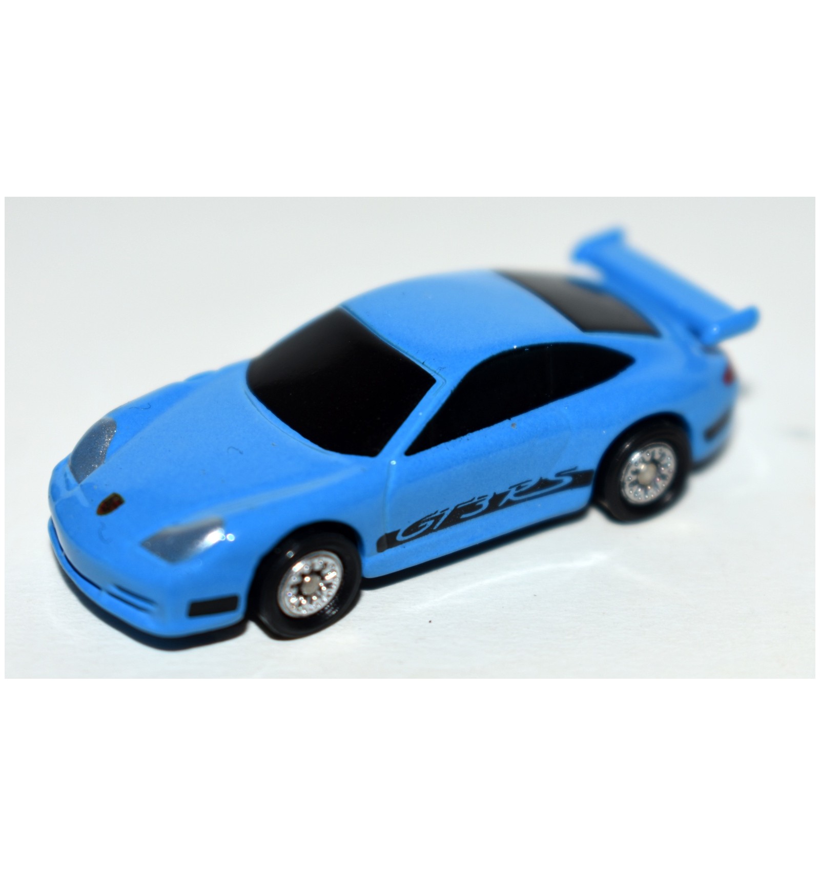 This is the Jada Hollywood Rides Fast & Furious Porsche 911 GT3 RS (996). These cars are approximately 1:100 scale, or slightly smaller than HO Scale, but larger than N Scale. The colors are amazing.