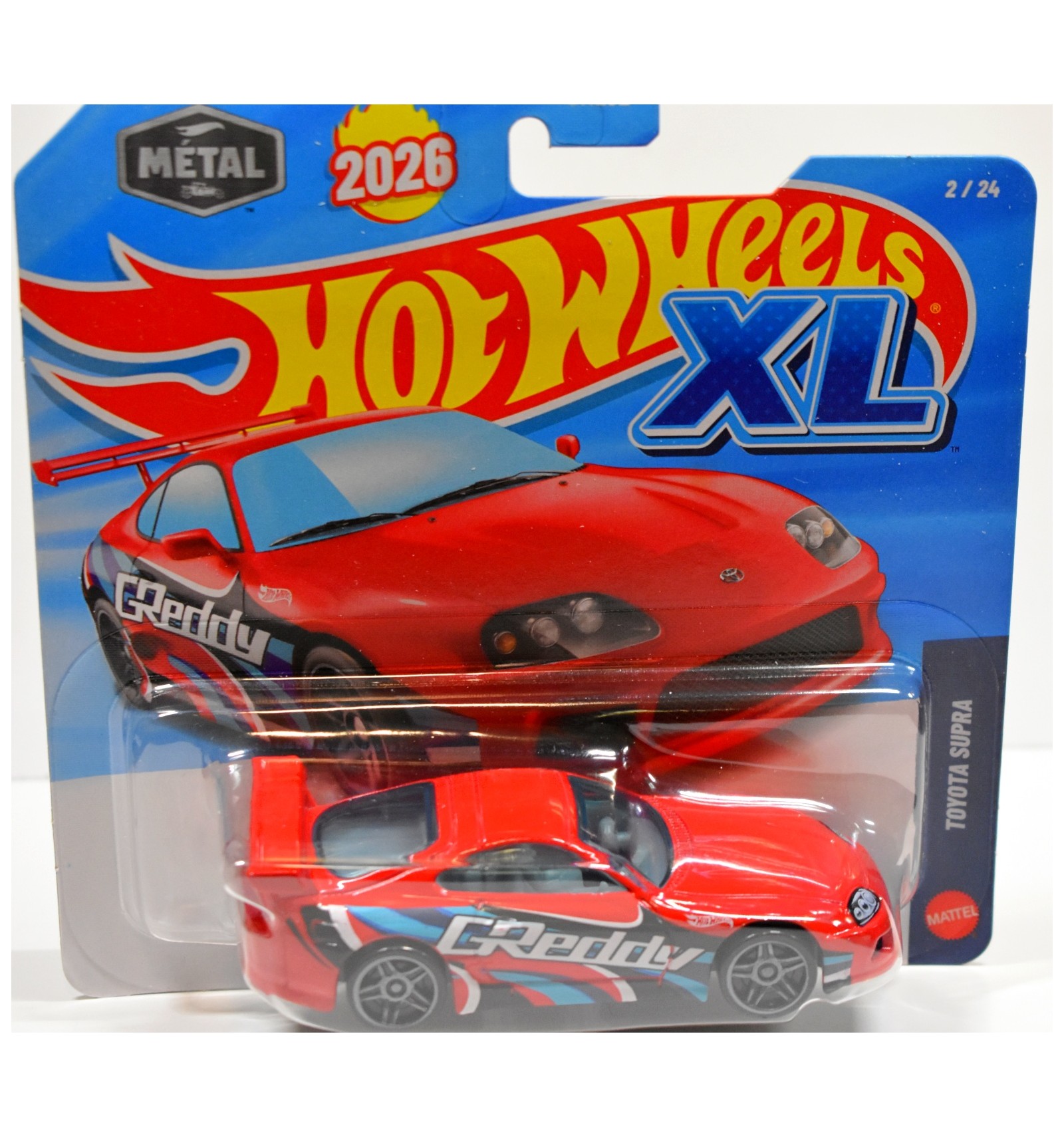 This is an outstanding Toyota Supra with GReddy graphics from Hot Wheels XL Series, which is new for 2026.  (1:43 Scale)