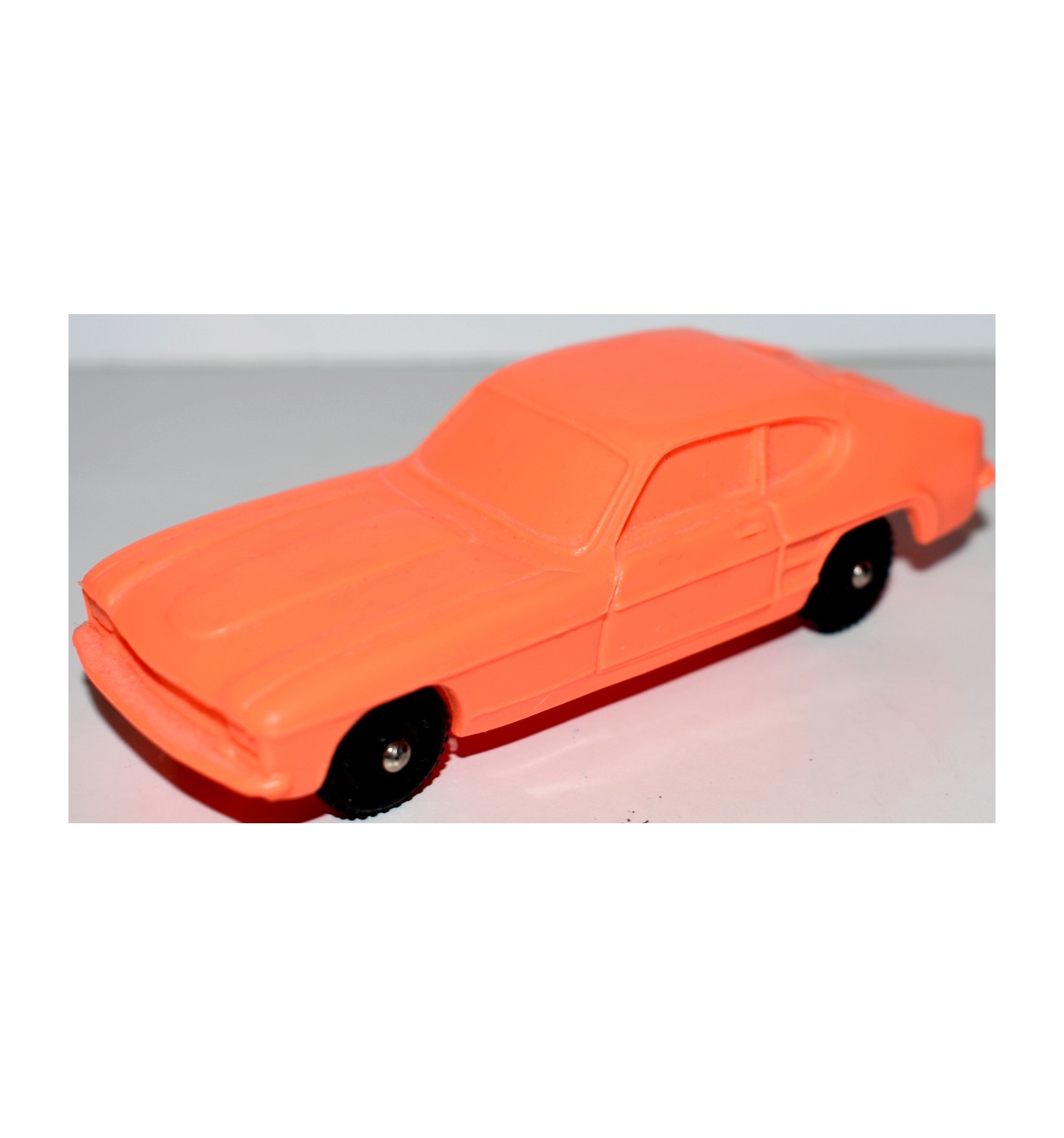 This is a great find! This is a very hard to find 1960's Ford Capri from the Imperial Toy Company. It is a rubber casting, not diecast metal and it's an early Ford Capri. The Capri was produce by Ford from 1969 to the early 80's.