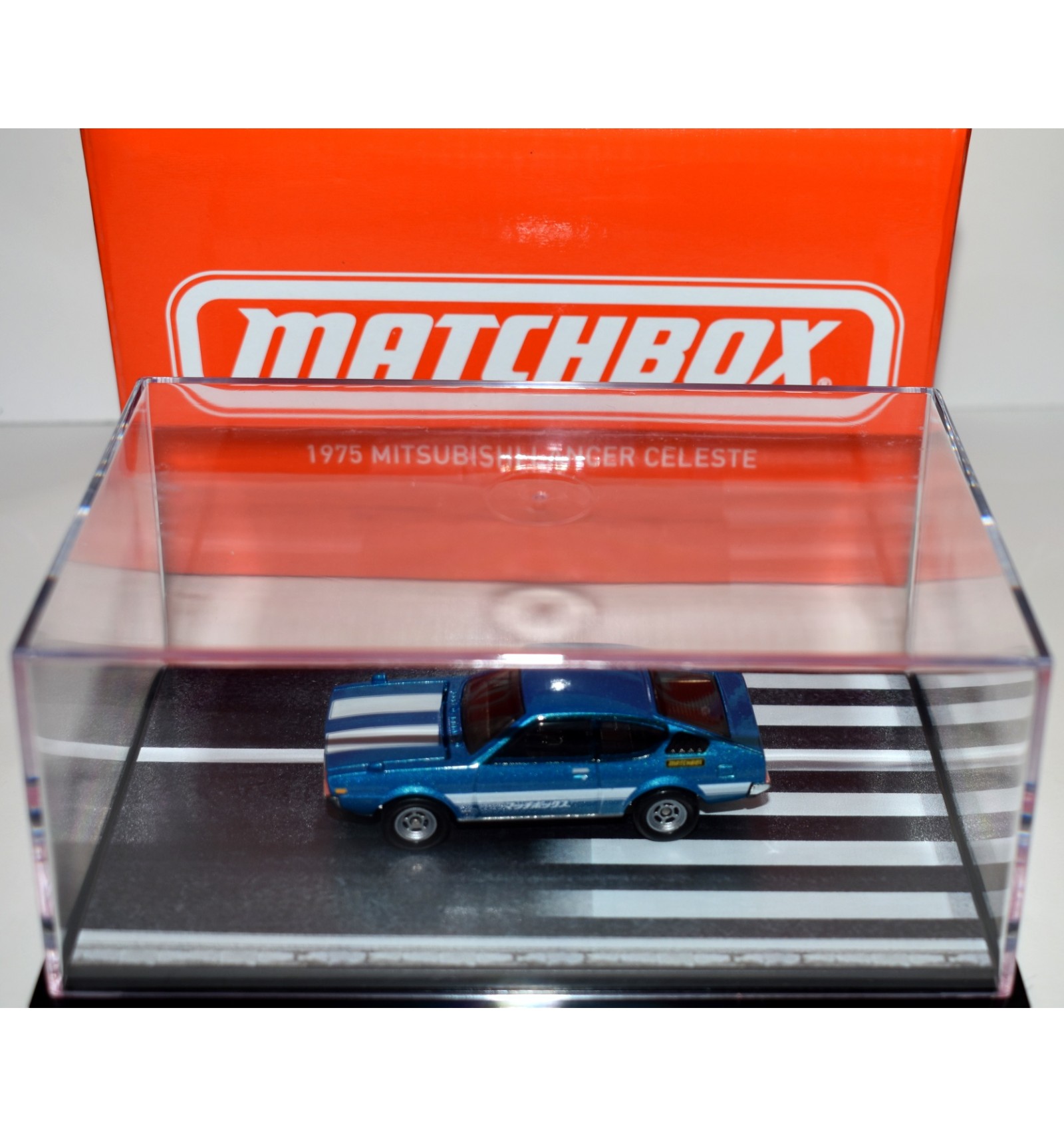This is the beautiful Matchbox Mattel Creations 1975 Mitsubishi Lancer Celeste, It is a limited edition model, and it is stunning! If you collect LE's, Mitsubishi or Matchbox this is a wonderful piece for your collection (1:64 Scale)