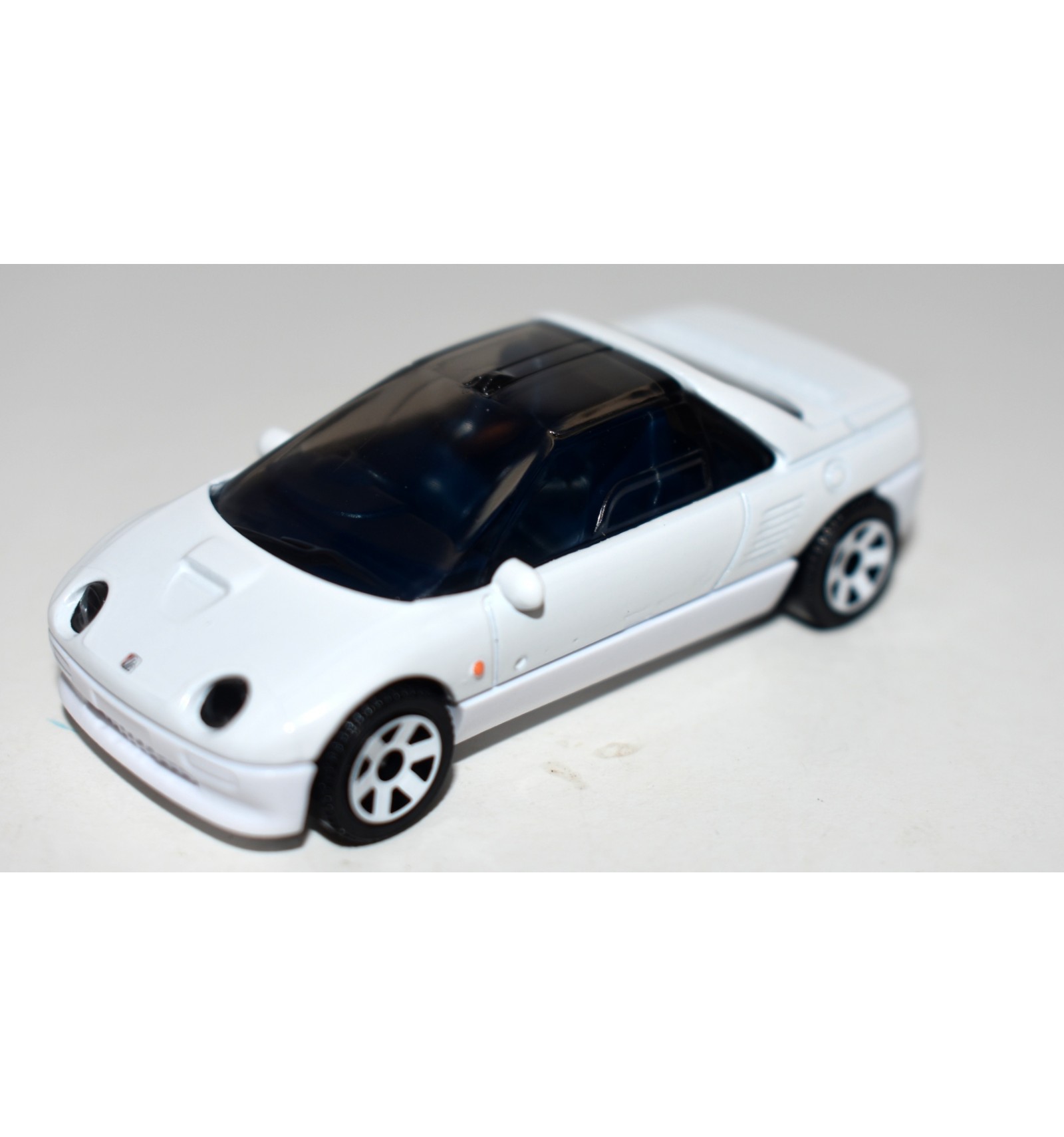 This is the beautiful 1992 Mazda Autozam AZ-1 from Matchbox. This was released as part of a set, this color was not available as a single release. Mazda has a history of producing some quirky, but very cool vehicles. This is one of them! It is a great cross-collectible so if you collect Matchbox or Mazda this is a great find for your collection. (1:64 Scale)