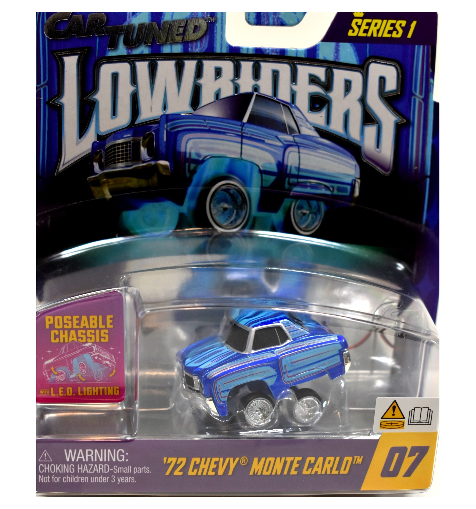 This is the Lowriders 1972 Chevy Monte Carlo Lowrider from the Lowriders Series 1. It is a beautiful casting, with great graphics. If you collect Chevrolet, Monte Carlo, Lowriders or MGA this is a beautiful piece for your collection (1:64 Scale)