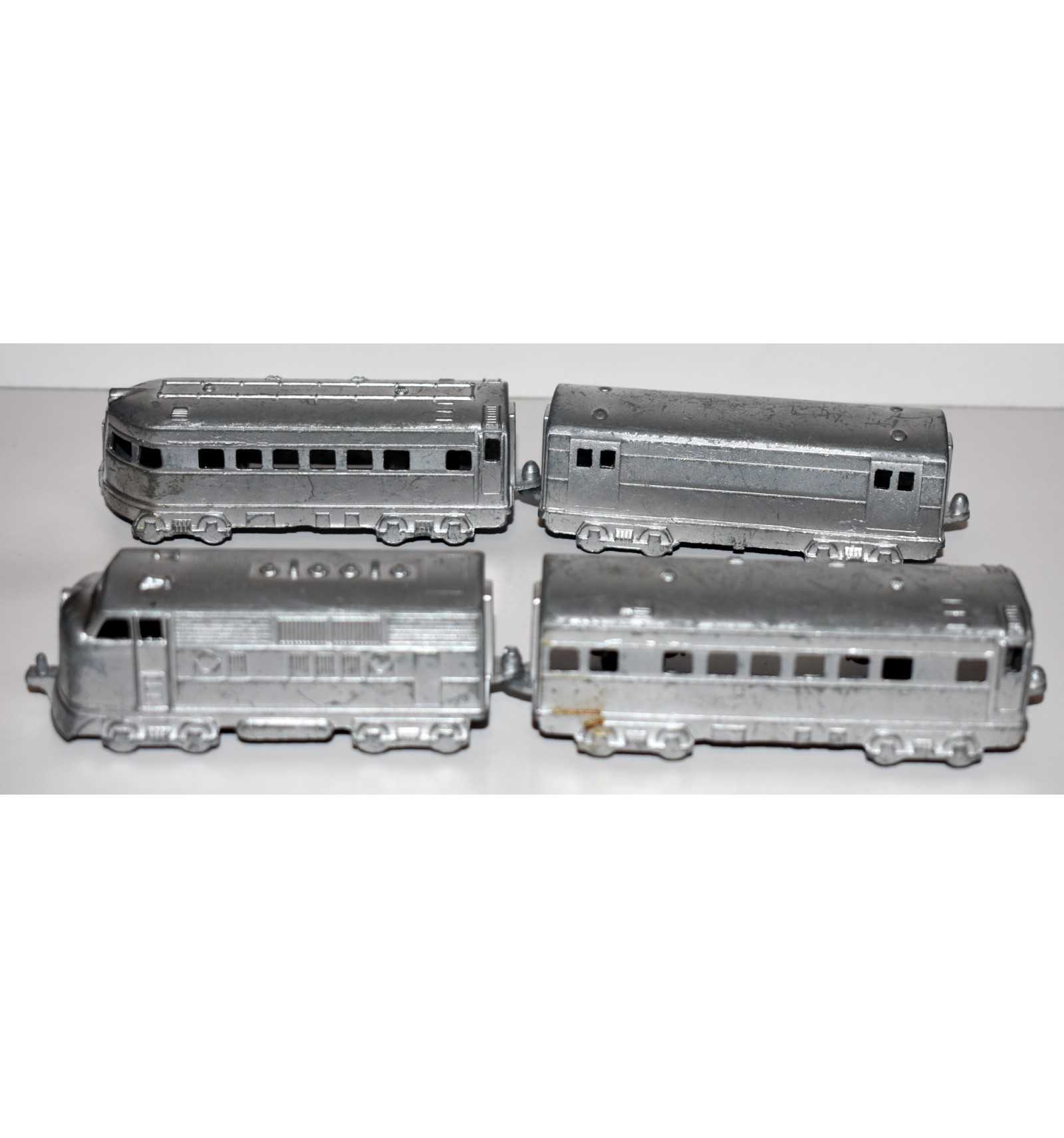 This is a wonderful find. This is the Midgetoy Junior Series F3 Diesel Train Engine with Baggage Car Passenger Car and Passenger Caboose. This was released 60+ years ago in 1961 and it is hard to find this set in tact like this! This is a wonderful find for any serious Train or Midgetoy collection. You simply will not find a nicer example at this price……..if you could even find one at all.