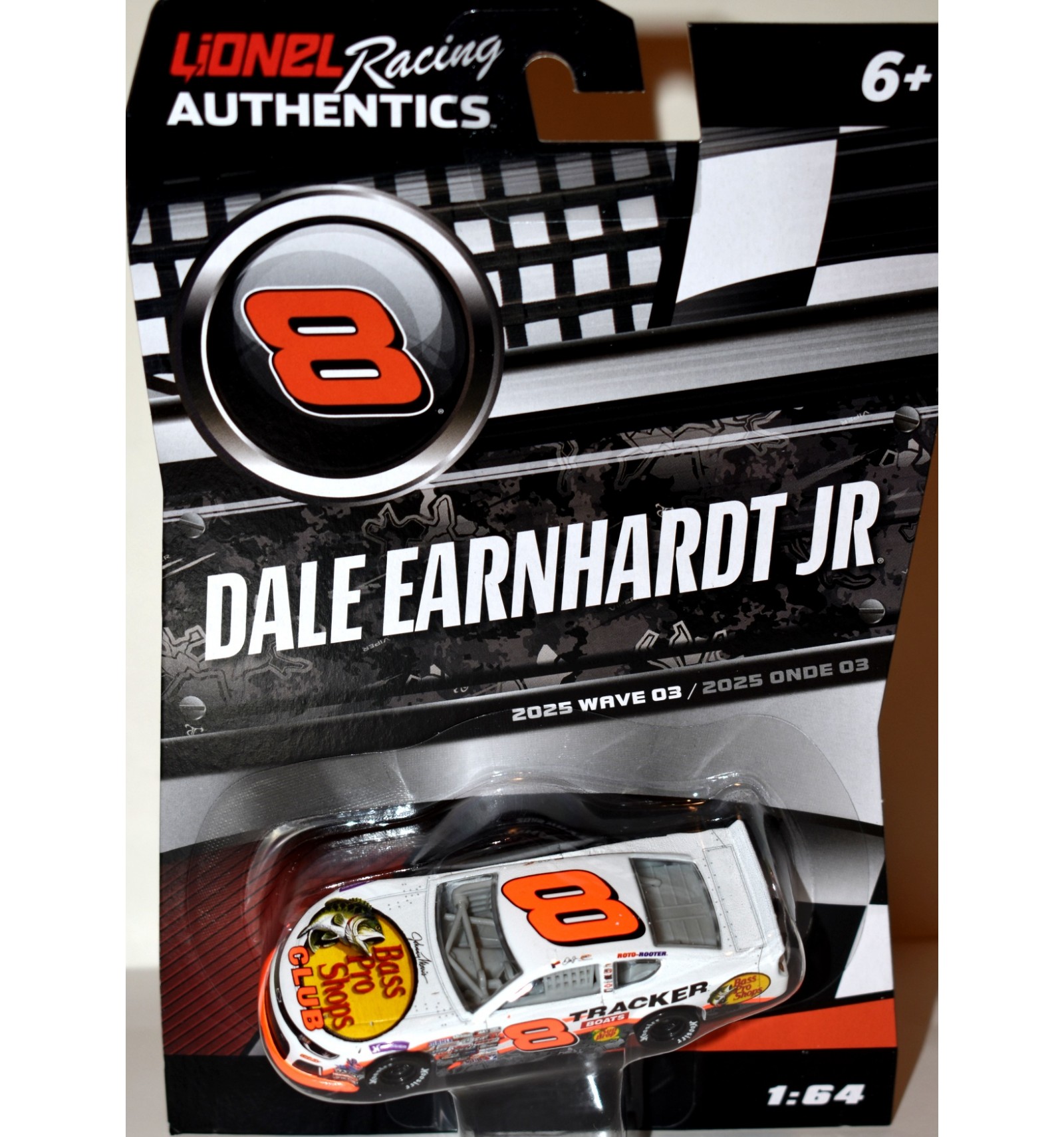Lionel NASCAR Authentics has released a beautiful, highly detailed line of NASCAR Stock Cars. This is the Dale Earnhardt Jr. Bass Pro Shops Club Chevrolet Camaro, and it from the 2025, Wave 03 release. If you collect NASCAR, Chevrolet, Camaro, Bass or Jr. this is a “must have” for your collection. (1:64 Scale)