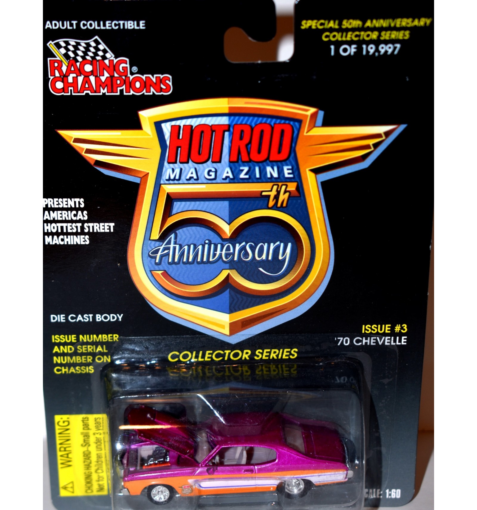 This is a beautiful 1970 Chevrolet Chevelle SS from Racing Champions. It is from the Hot Rod Magazine 50th Anniversary series. It is a great cross-collectible, so if you collect Racing Champions, NHRA, Chevy or Chevelles this will be a wonderful addition to your collection. (1:64)