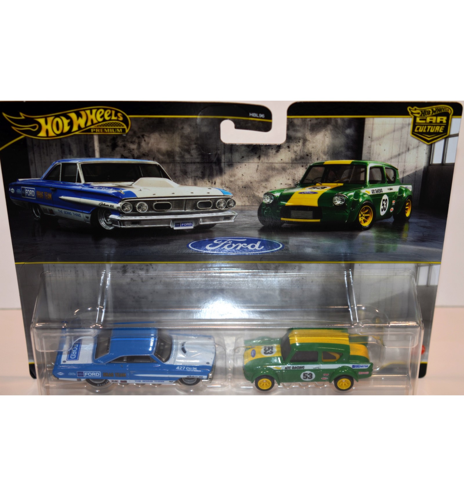 Hot Wheels Premium - Ford Racing Set - 1964 Galaxie 500 & 1967 Ford Anglia Race Car