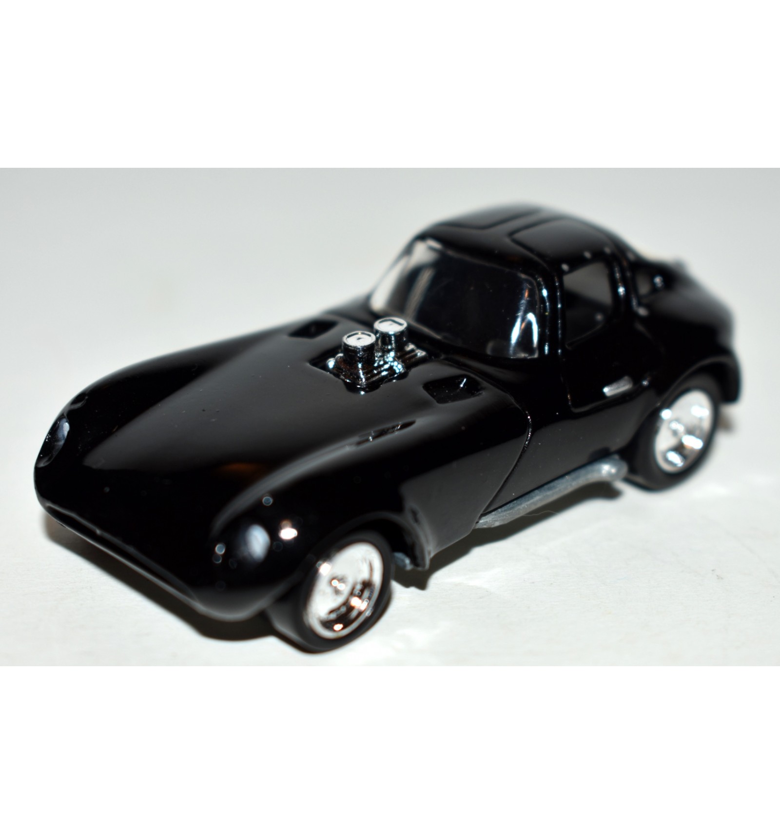 This is the Cheetah, a classic Chevy Based SCCA Race car. This one has solid Rims, Dual Quads and Hard tires. It should be noted that the Cheetah is one of a couple of Rebel Rod castings that has the same engine on every model. So the variations for the Cheetah are limited to Color/Tire/Rim. This one is Black, with SST Wheels and Hard Tires