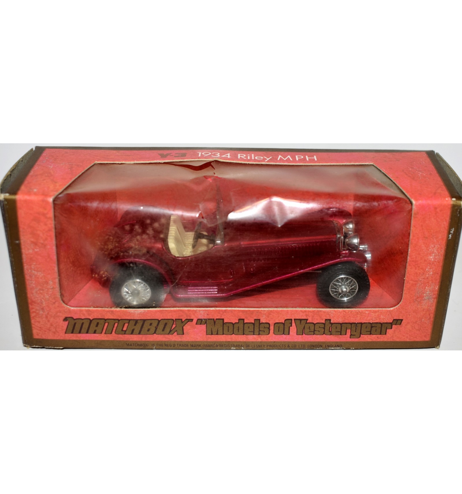Collectors Note: This is the hard to find Dark Red variation that has BOTH a white interior and Radiator! If you collect Riley, Matchbox, or Models of Yesteryear this a chance to add a gem to your collection. (1:43 Scale)