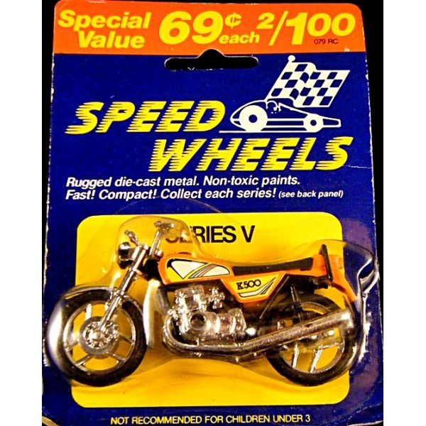This is the beautiful Kawasaki K-500 Motorcycle from Speed Wheels. Released over 30 years, it's still unopened in its original packaging. The blistercard shows its age, but these are so hard to locate in this condition that this is a wonderful find!. If you collect Speed Wheels, Kawasaki, or Motorcycles this is a unique piece for your collection (Approx 1:43 Scale)
