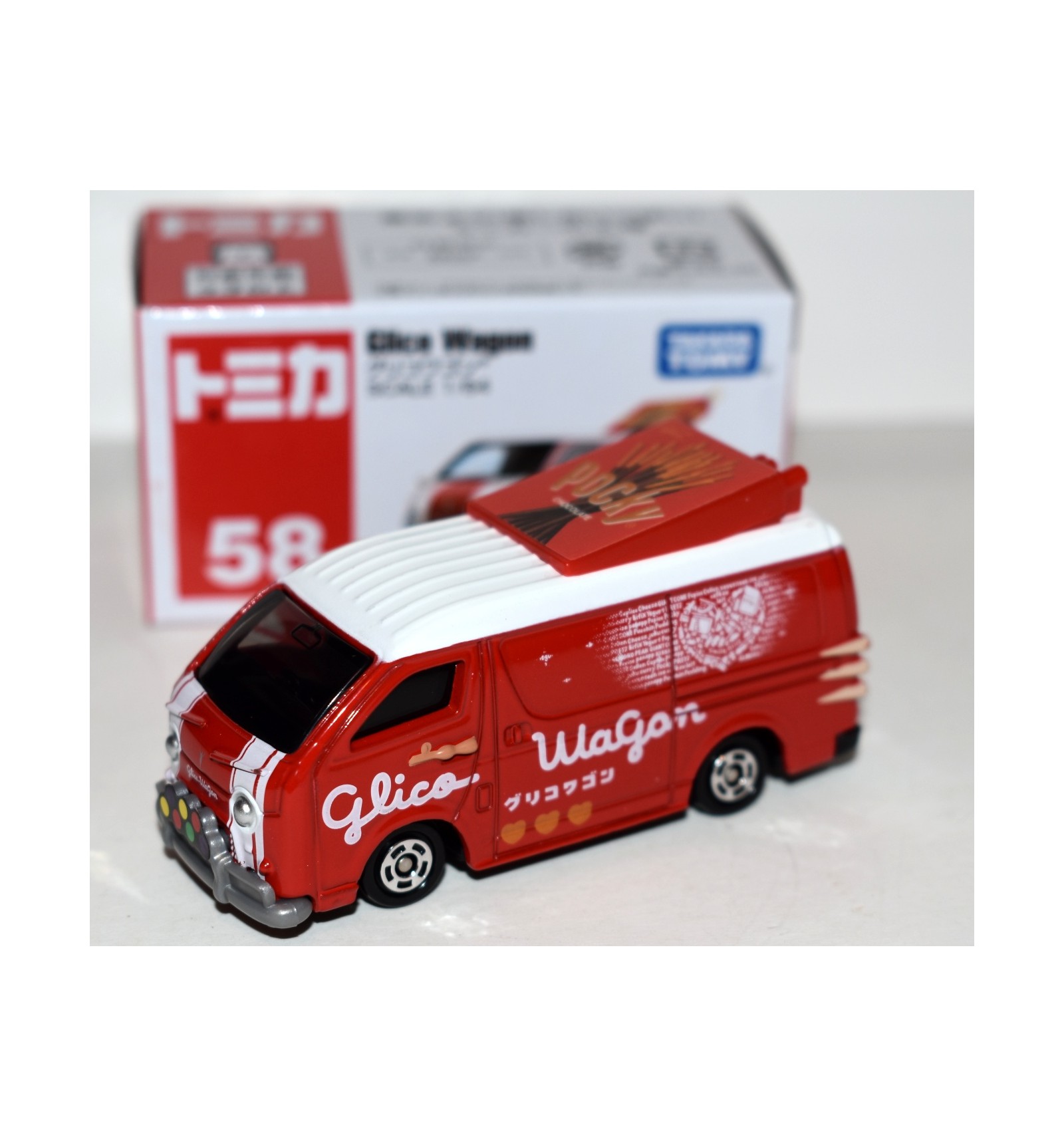 This is the #58 Glico Wagon which is a Custom Van that drives around Japan spreading Pocky goodness. It's based on a custom Toyota Hiace Van If you collect Toyota, Glico, Pocky or Tomica this is a very nice addition for your collection! (1:64 Scale)
