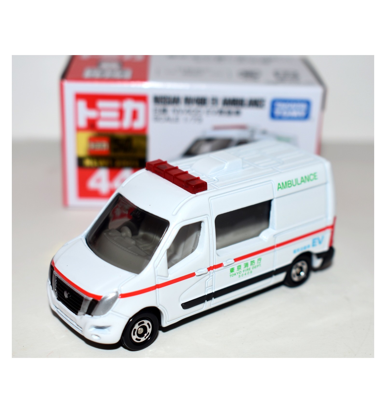 This is the beautiful No. 44 Nissan NV400 EV Ambulance casting from Tomica. So if you collect either Nissan, EMT Vehicle, EV's or Tomica this is a wonderful addition for your collection! (1:64 Scale)