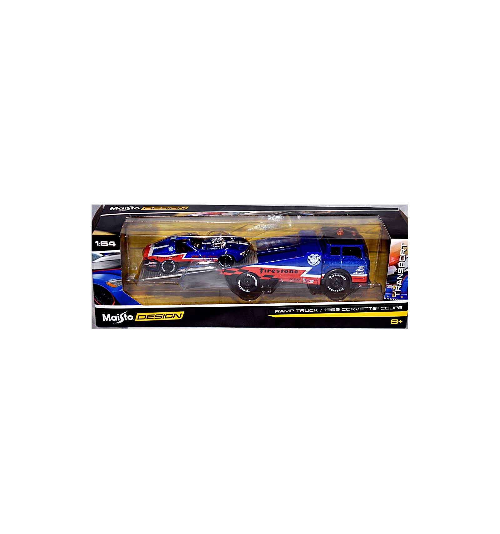 Maisto - Design - 1969 Chevrolet Corvette Stingray and Ford Ramp Truck Set