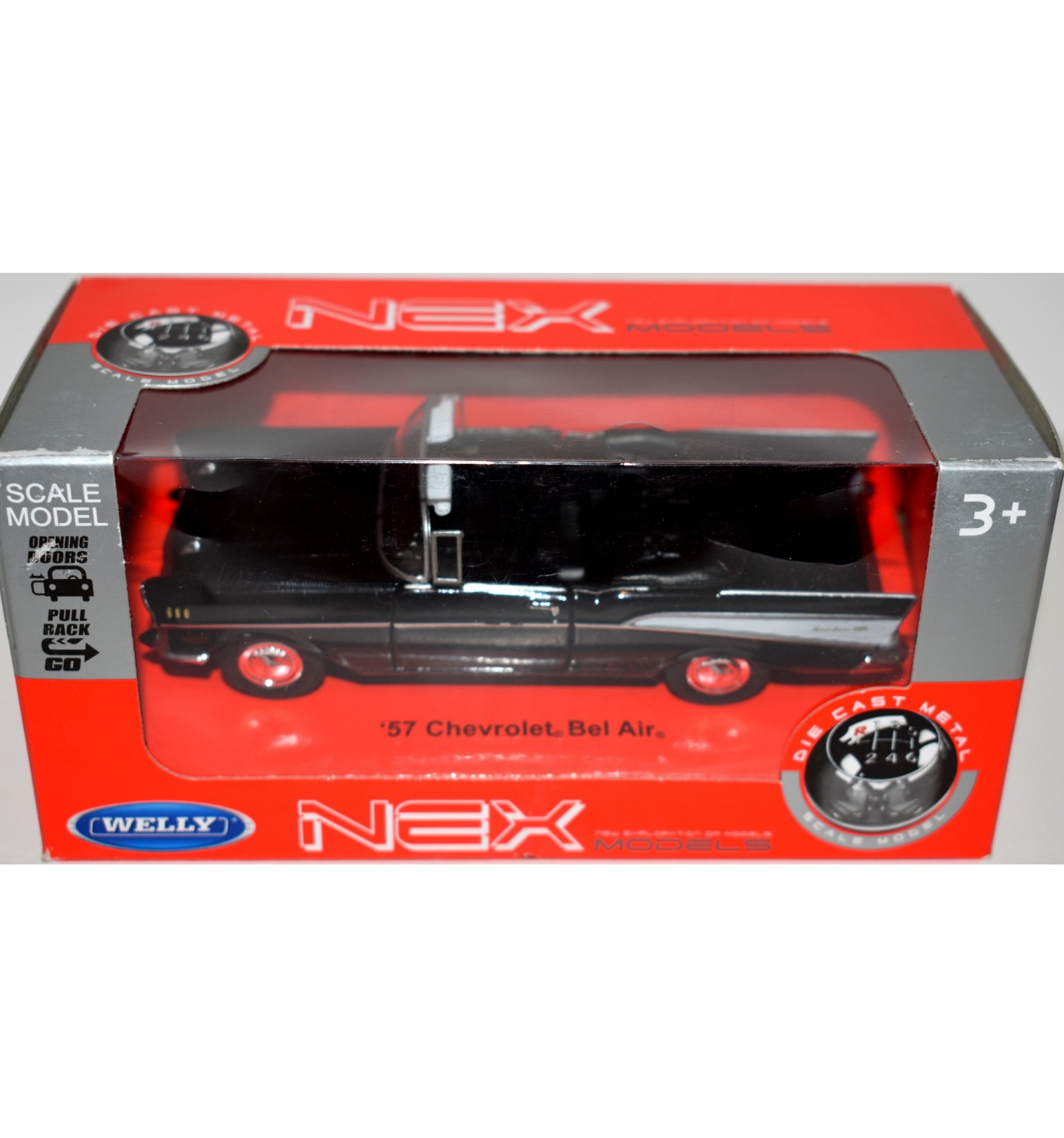 This is the beautiful Welly 1957 Chevy Bel Air Convertible from Welly's NEX lineup. This is a nicely detailed car that also features a pull-back motor. The car is Mint, the box shows some wear for it's age.